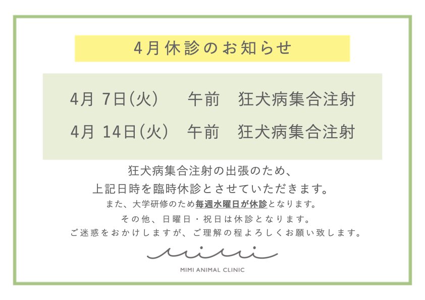 定期的な岐阜大学研修のため当面の間、水曜日を休診とさせていただきます。